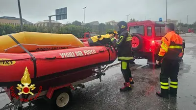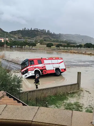 Maltempo, mezzo dei Vigili del fuoco in difficoltà a Steccato di Cutro