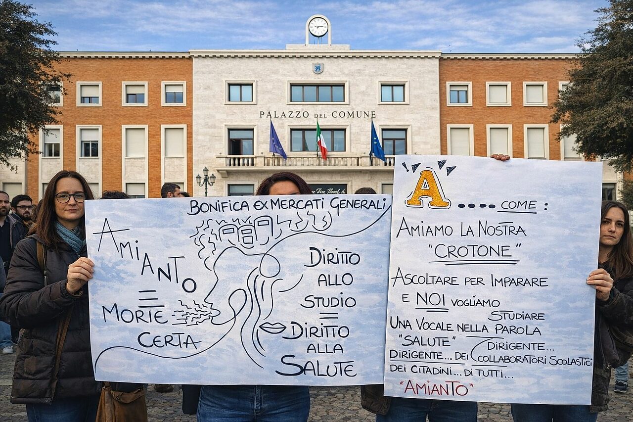 «In questi cartelli – hanno sostenuto ancora gli organizzatori – c’è una città che ama Crotone davvero. C’è chi vuole studiare senza paura. C’è chi chiede bonifica, trasparenza, responsabilità. Non è allarmismo. È attenzione. E la parola “attenzione”, lo hanno scritto loro, contiene già dentro la parola “amianto”. Oggi non hanno alzato la voce. Hanno alzato cartelli. E a volte basta questo per ricordare a tutti che la salute non è un’opinione» sottolineano.