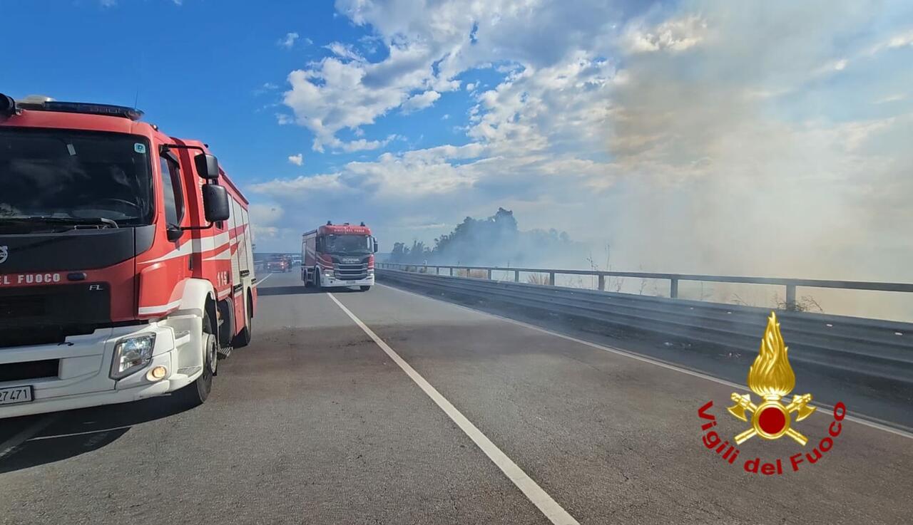 A causa del denso fumo e dell'altezza delle fiamme durante le operazioni di spegnimento, la Statale 106 è stata chiusa al traffico. La gestione della viabilità e la messa in sicurezza dell'area è stata garantita dalla Polizia Stradale presente in posto.