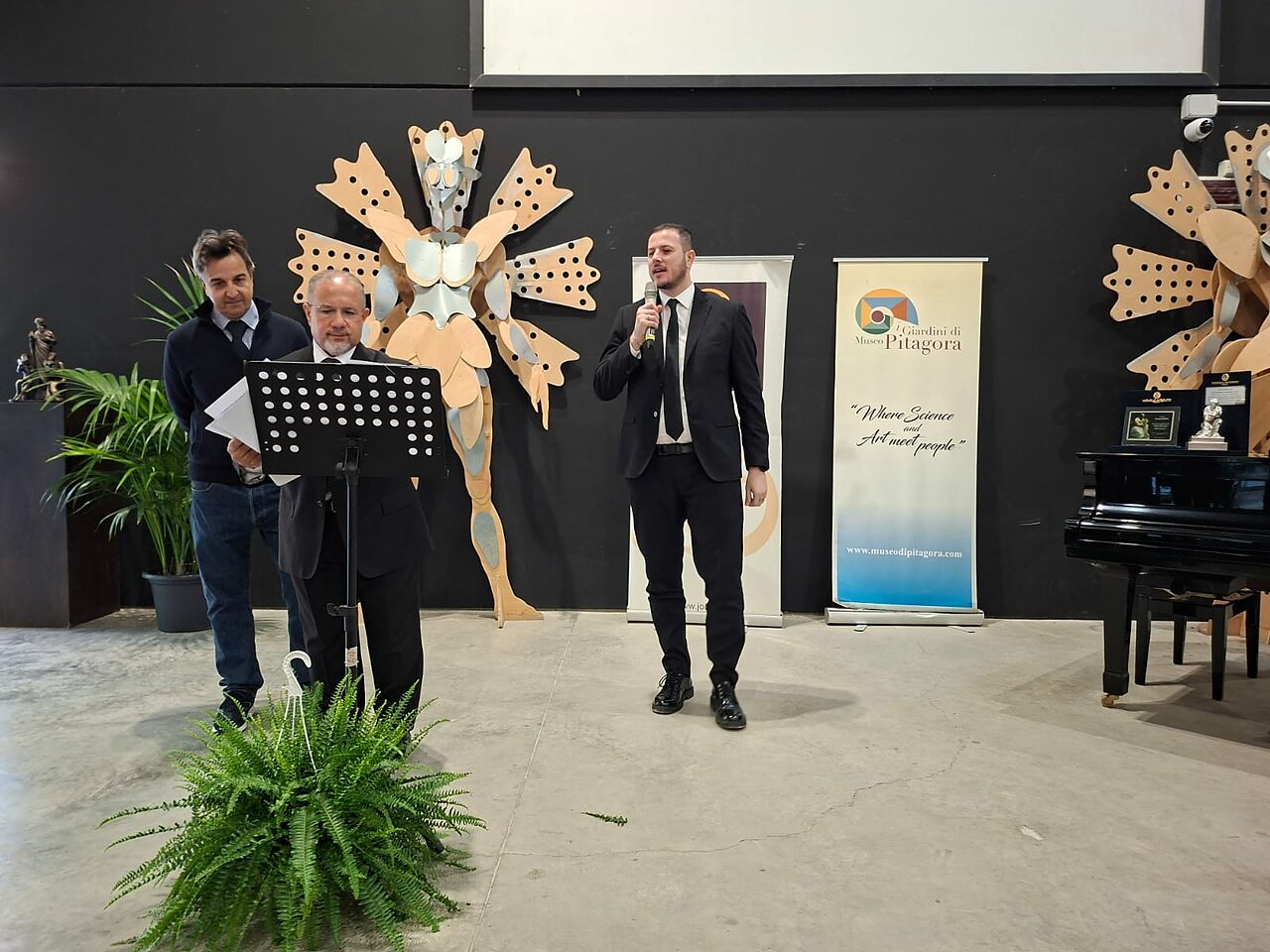 A suggellare simbolicamente il valore del riconoscimento è il “Pitagora d’argento”, prestigiosa scultura realizzata dai maestri orafi Michele e Antonio Affidato. Un’opera che va oltre il valore artistico, assumendo un significato identitario profondo, legato alla storia e alla cultura del territorio. La scultura nasce nel 2015 nel laboratorio di Michele Affidato, da un’idea maturata nel tempo e ispirata alla figura di Pitagora così come raffigurata da Raffaello Sanzio nella celebre Scuola di Atene, custodita nella Stanza della Segnatura dei Musei Vaticani.