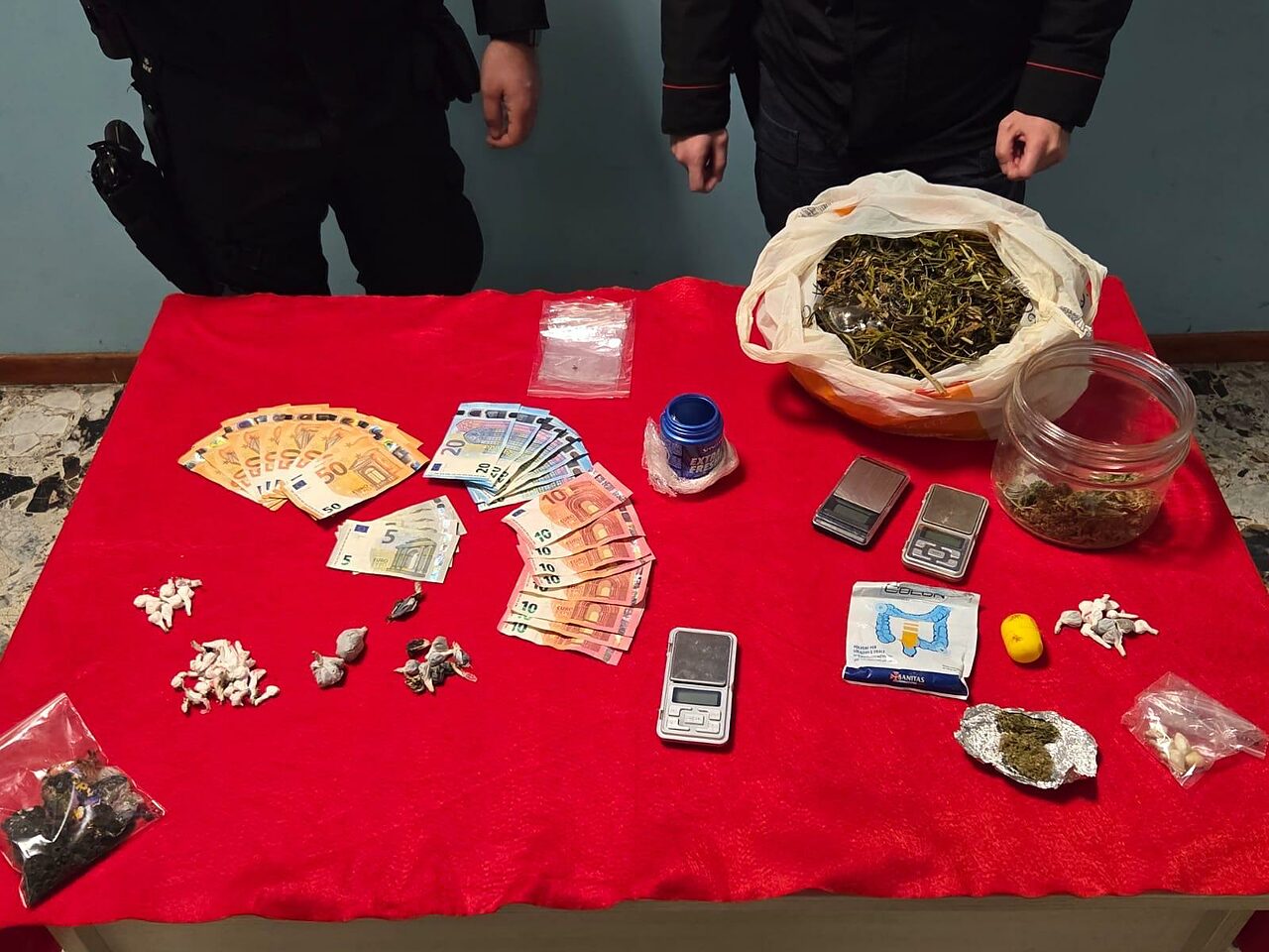 Nel corso della perquisizione domiciliare, i militari hanno rinvenuto, abilmente celate all’interno di un camino, 36 dosi di cocaina già confezionate, oltre a quantitativi significativi di hashish, parte dei quali suddivisi in dosi (12 e un panetto) pronte per la vendita.