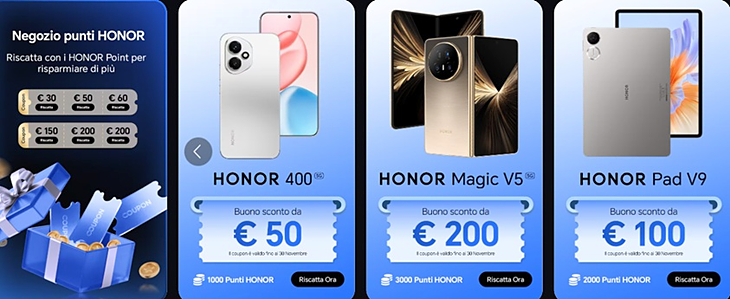 HONOR Point e coupon Black Friday 2025: premi, sconti e vantaggi esclusivi