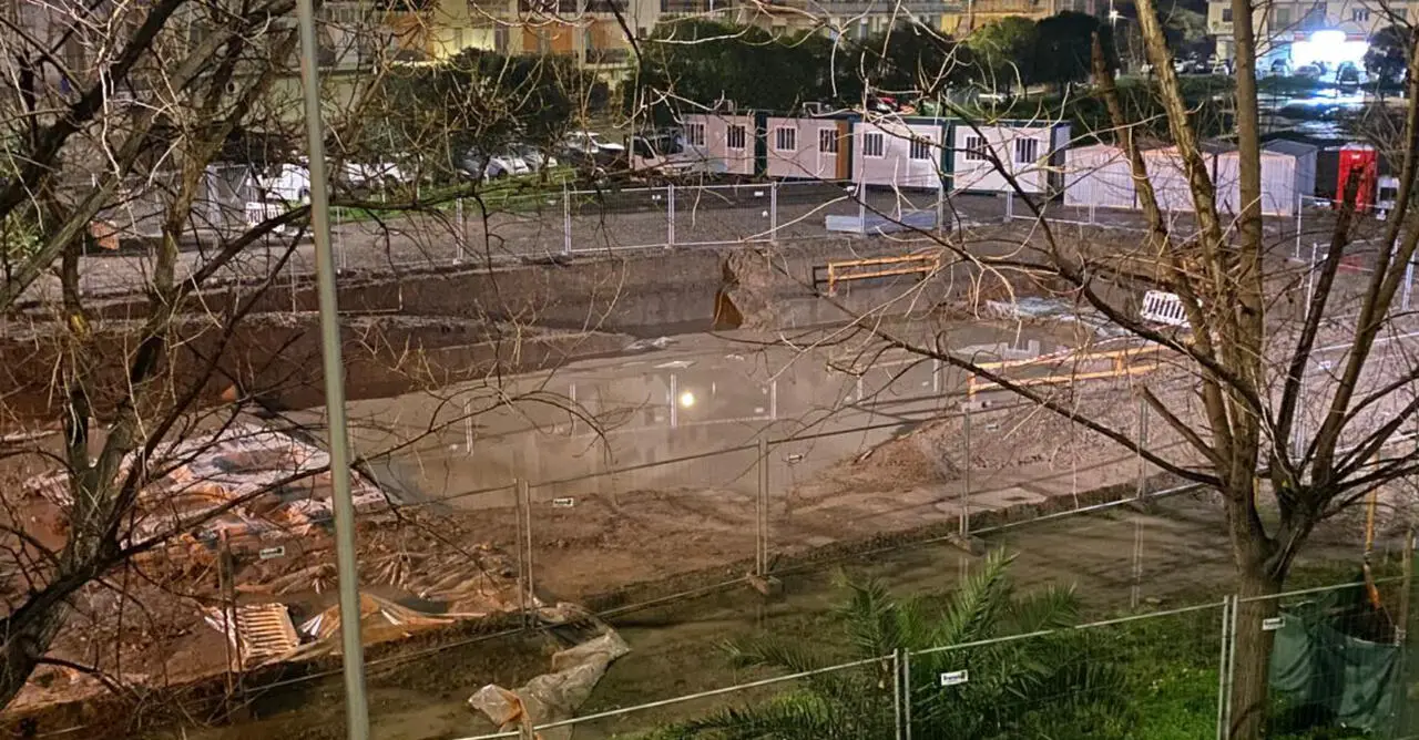 La pioggia intensa caduta tra il tardo pomeriggio e la prima serata di domenica 2 febbraio ha riempito d'acqua la porzione più profonda del cantiere all'aperto