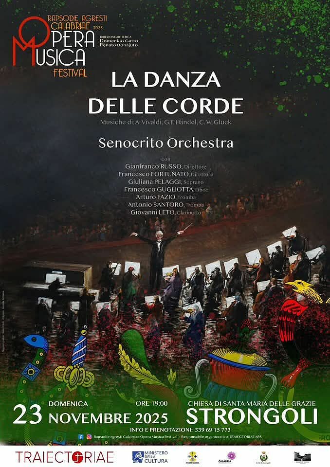 La Quinta edizione delle Accademie Musicali Leonardo Vinci di Strongoli, si apre con il concerto diretto dal Maestro Gianfranco Russo, e vede la collaborazione dell’Assessorato alla Cultura del Comune di Strongoli, del Conservatorio Statale di Musica Pyotr Ilich Tchaikovsky, dell’Associazione Traiectoriae e del Rotary Club di Strongoli. L’evento è stato organizzato dal direttivo delle Accademie presieduto dall'avvocato Stefania Leotta, dal Direttore di Produzione dr.ssa Rosalba Cotrone, e dai due Direttori artistici, il Maestro Francesco De Siena e il Maestro Gianfranco Russo, che da oltre cinque anni si propongono di far conoscere l’Opera di Leonardo Vinci attraverso Concerti, allestimenti degli Intermezzi Barocchi, Convegni, e commissioni di nuovi progetti artistici e culturali.