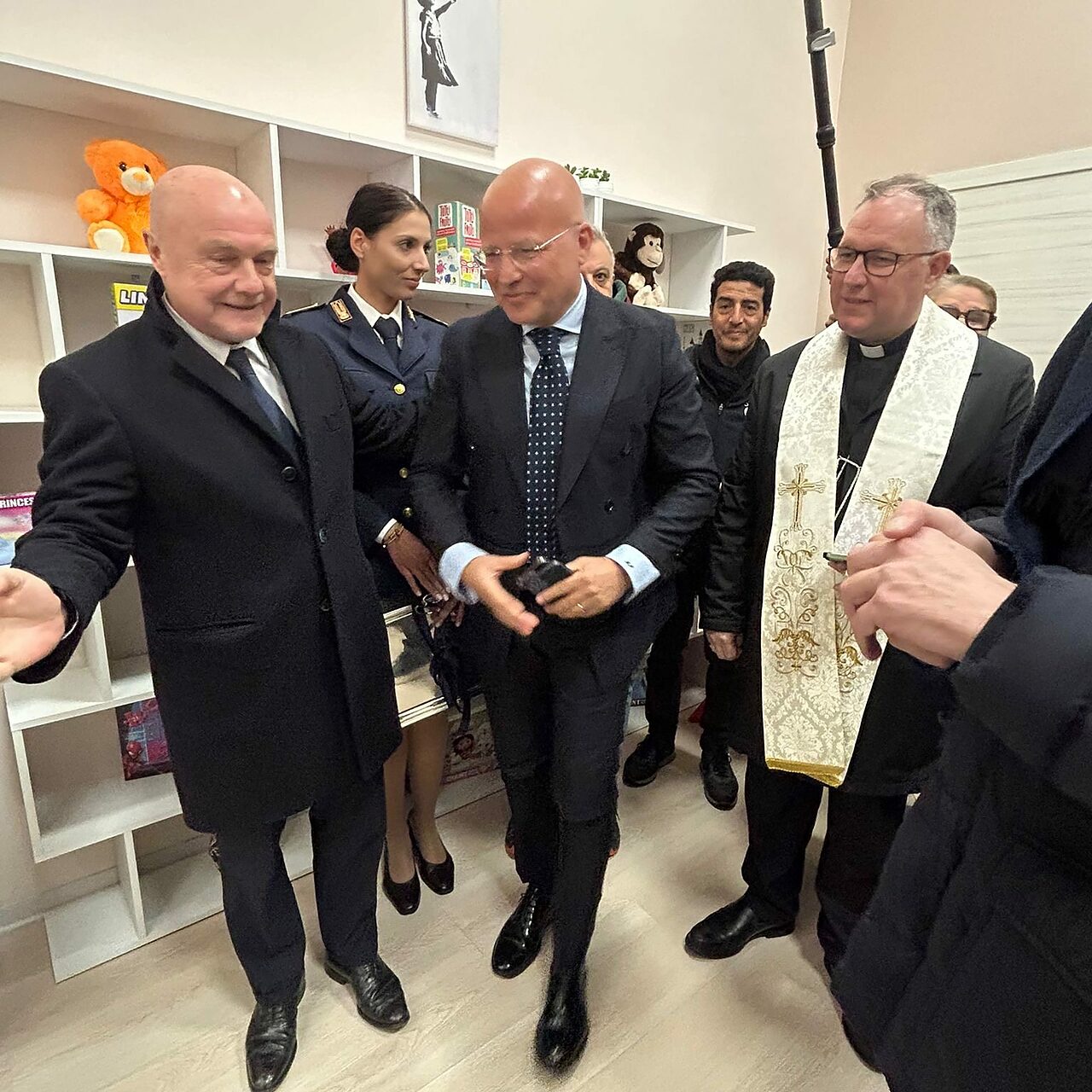 Al termine del dibattito si è svolta la cerimonia di inaugurazione della stanza, con il tradizionale taglio del nastro e la benedizione dei locali, impartita dal vescovo di Crotone-Santa Severina, Alberto Torriani, insieme al cappellano della Polizia di Stato, Pancrazio Limina.