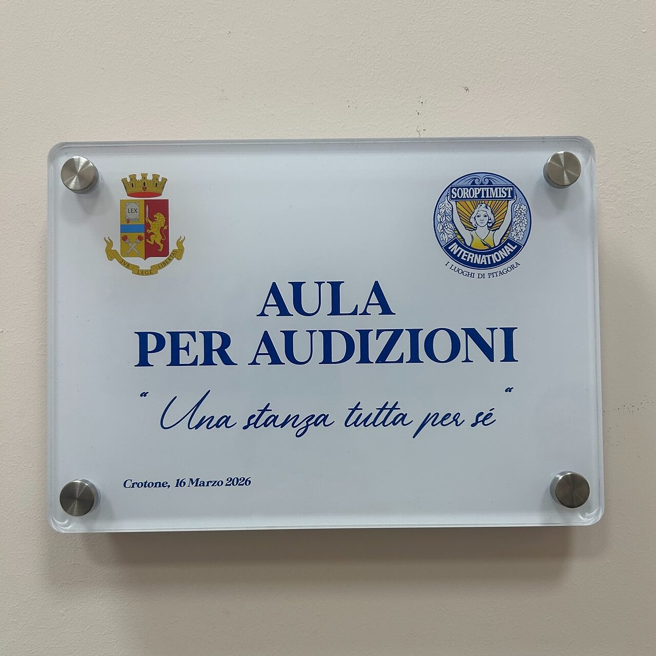 La struttura, situata in via Miscello da Ripe presso l'ex sede della polizia nautica, nasce infatti dalla collaborazione tra la Questura di Crotone e il Soroptimist club Crotone, nell'ambito di un protocollo d'intesa nazionale. La stanza comprende un'area di accoglienza per bambini e una sala riservata e arredata per facilitare il colloquio tra le vittime e il personale specializzato della Polizia di Stato.