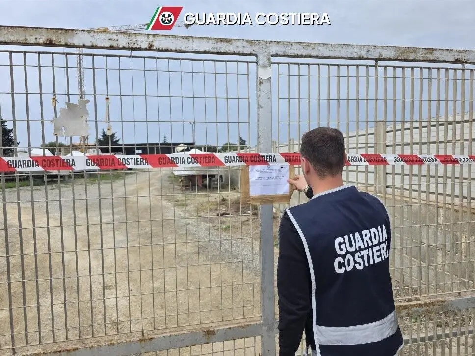 I militari della Capitaneria di porto di Crotone hanno posto i sigilli in un'area di 5mila metri quadrati. Ulteriori verifiche sono ancora in corso