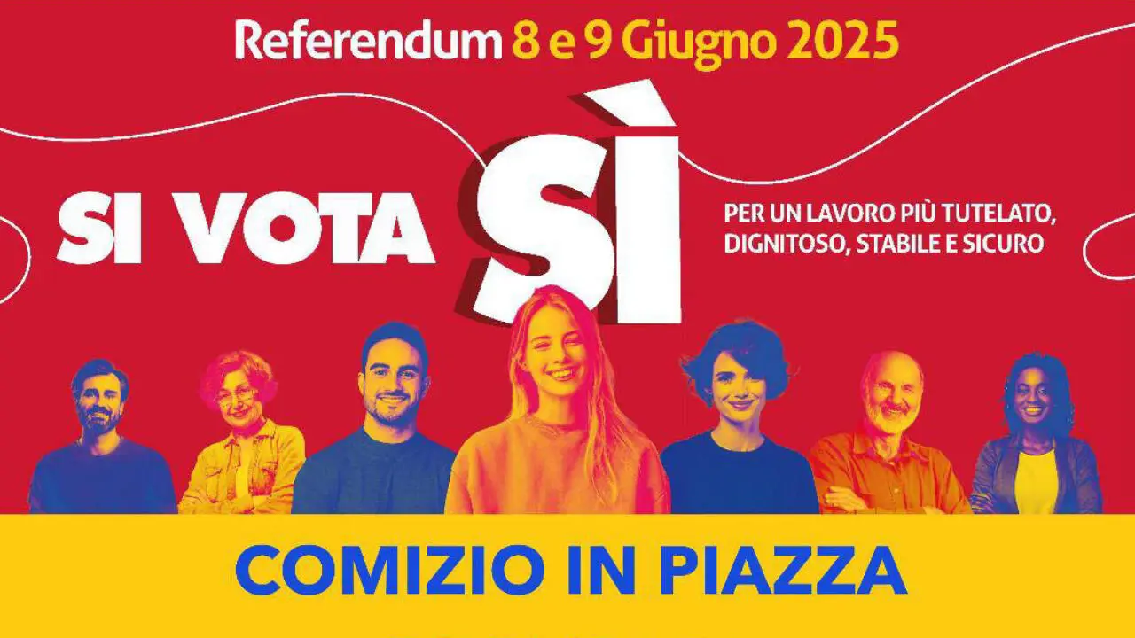 CROTONE La Federazione provinciale del Pd informa che giovedì 29 maggio, a partire dalle ore 19, in piazza della Resistenza a Crotone, si terrà «un importante comizio pubblico a sostegno dei referendum sul lavoro e sulla cittadinanza previsti per l'8 e il 9 giugno 2025».