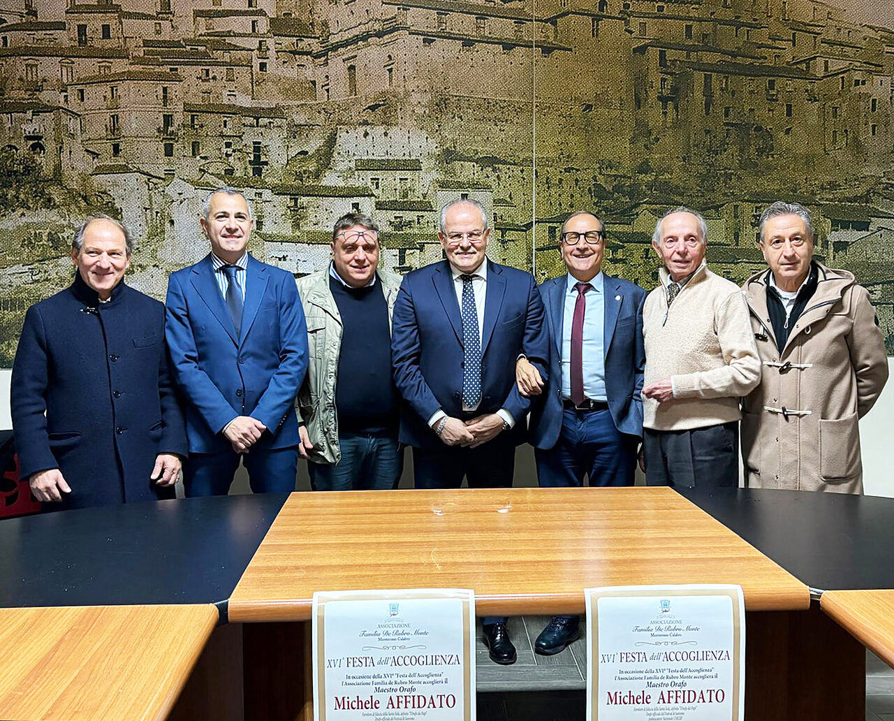 CROTONE Il maestro orafo Michele Affidato premiato nel corso della XVI Festa dell’Accoglienza a Monterosso Calabro. La cerimonia si è svolta sabato 22 novembre scorso, nella cornice della sala consiliare del Comune di Vibo Valentia, promossa dall’Associazione “Familia De Rubro Monte”, presieduta da Giuseppe Crispino.