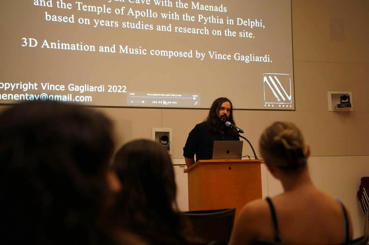 L'invito a partecipare all’evento ospitato dal Centro ellenico di studi di Harvard è arrivato dalla stessa “Unione ecumenica delfica” e dalla direttrice dell’Isadora Duncan International Institute di New York, custode della tradizione di danza ispirata dalla perfezione classica dell´antica Grecia. Durante l’evento del 23 agosto, Gagliardi ha presentato in anteprima l’ultima versione dell’animazione 3D del tempio delfico, accompagnata da un discorso introduttivo che ha toccato temi storici, spirituali e artistici.