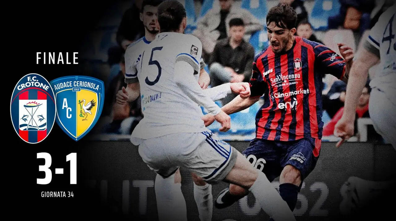 Dopo due turni di astinenza, il Crotone ritrova il sorriso allo Scida superando l'Audace Cerignola per 3-1. Una vittoria fondamentale, arrivata grazie a un secondo tempo arrembante, che permette ai pitagorici di consolidare il sesto posto in classifica a quattro giornate dalla fine della regular season.