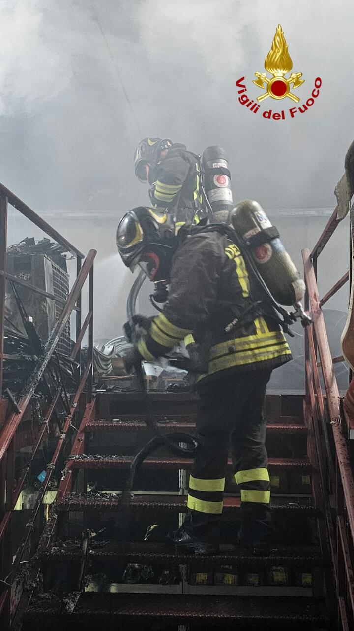 Le squadre dei vigili del fuoco della sede centrale, giunte sul posto, nel constatare un intenso fumo che fuoriusciva dalla serranda d'ingresso, con l'ausilio degli automezzi in dotazione, hanno proceduto allo spegnimento e raffreddamento sia dall'alto che dall'interno raggiungendo la zona dove vi era il materiale interessato dall'incendio in corso.