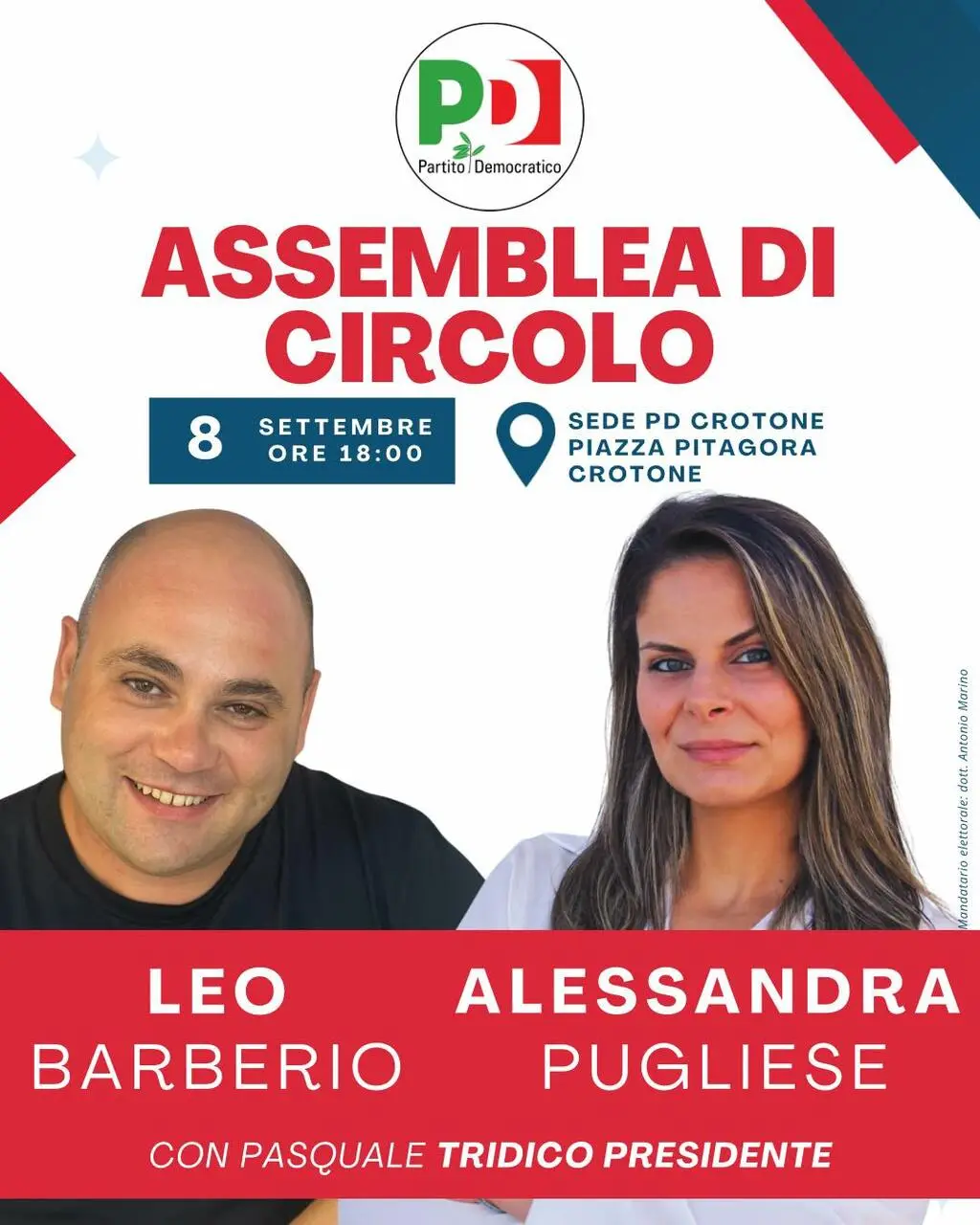 Due due appuntamenti importanti in programma lunedì 8 settembre (Assemblea di Circolo) e giovedì 11 settembre (Apertura iniziative voto) con la presenza dei due candidati