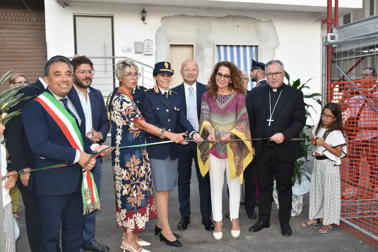 Taglio del nastro da parte del questore Panvino alla presenza del sottosegretario di Stato Wanda Ferro, del governatore Roberto Occhiuto e di altre autorità civili e religiose