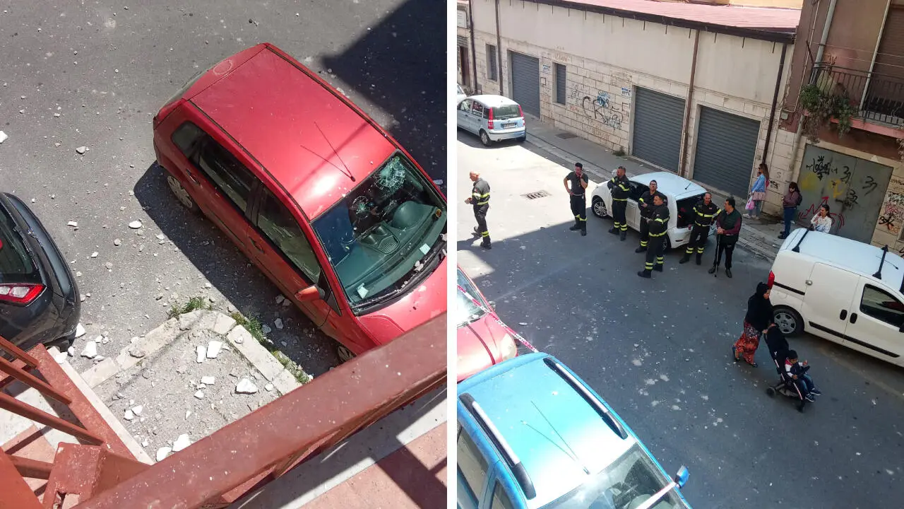 Calcinacci in caduta libera su via Nicoletta: nessun ferito, ma danni ad auto