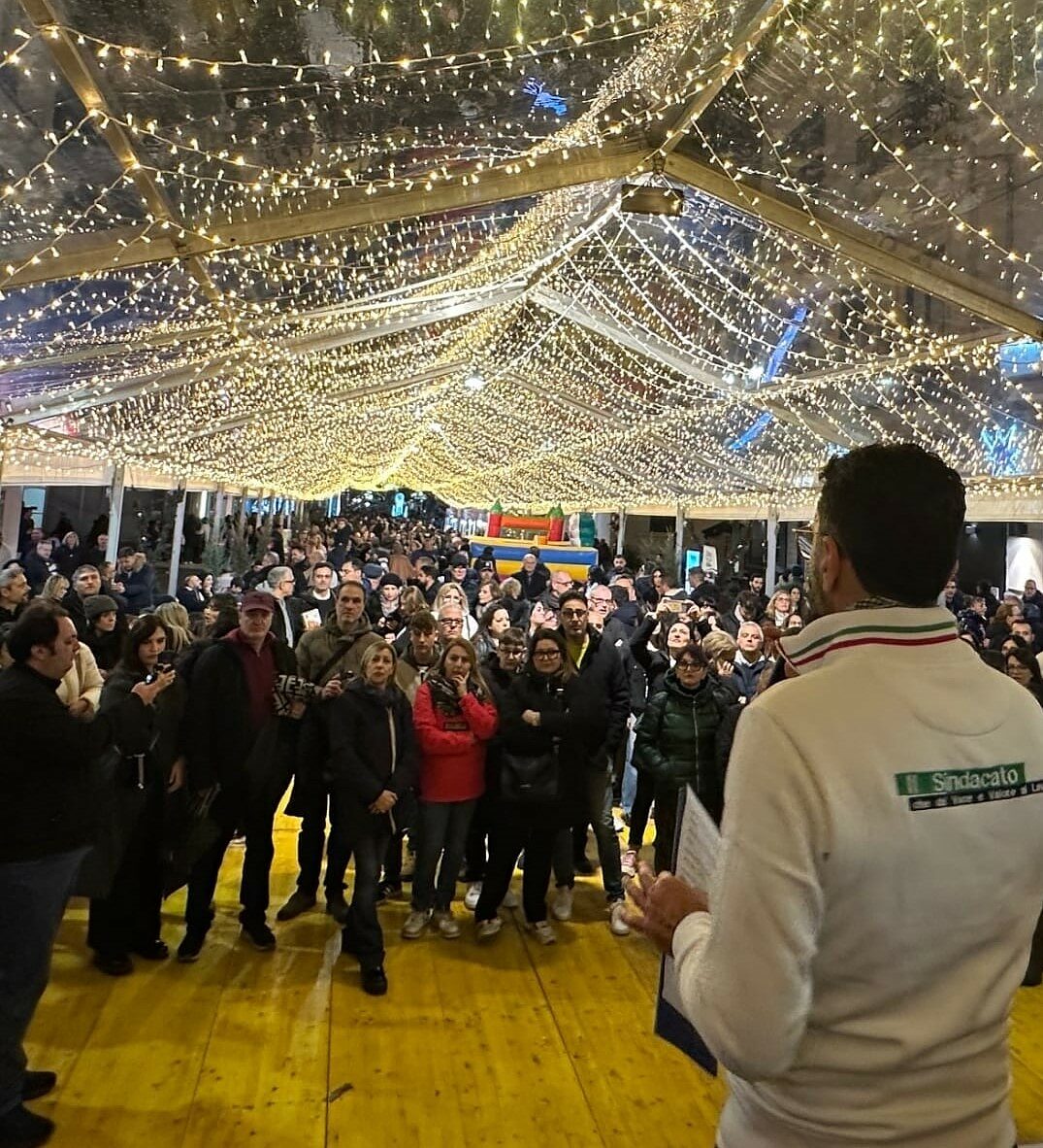 Sul palco, a ricevere l’assegno, Don Ezio Limina, responsabile della Mensa dei poveri, ha ringraziato così: «Grazie a Fabio, al segretario nazionale e a tutti i componenti del sindacato per questa sensibilità. La Mensa accompagna ogni giorno chi ha bisogno, perché la carità non è solo un gesto natalizio, ma un impegno quotidiano».