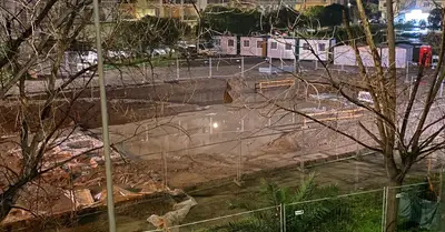 La pioggia intensa caduta tra il tardo pomeriggio e la prima serata di domenica 2 febbraio ha riempito d'acqua la porzione più profonda del cantiere all'aperto