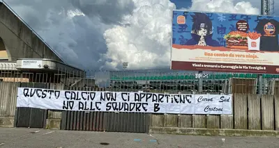Protesta dei tifosi del Crotone a Bergamo: «Questo calcio non ci appartiene»