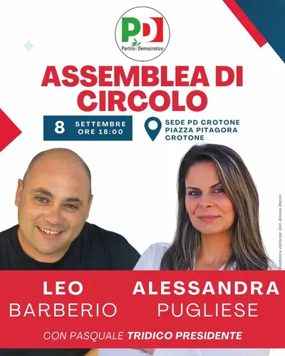 Due due appuntamenti importanti in programma lunedì 8 settembre (Assemblea di Circolo) e giovedì 11 settembre (Apertura iniziative voto) con la presenza dei due candidati